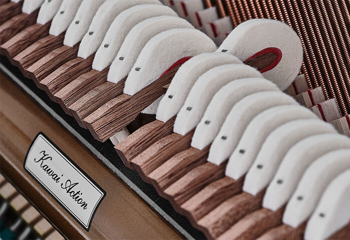 KAWAI日本进口特制弦槌,采用天然羊毛制作,科学地增大了填绒量,较普通弦槌更丰满厚实,弹性更佳,爆发力更强 。