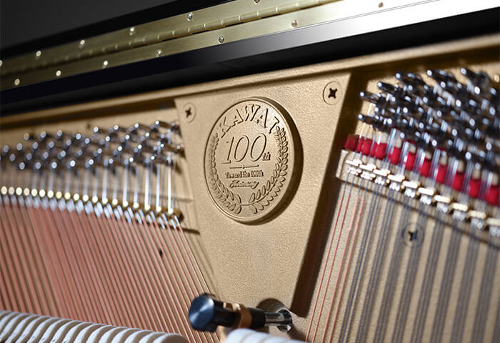 KAWAI Toward the 100th Anniversary迈向百年源系列立式钢琴采用日本原装进口铁板,全新铁板设计比例使延音更长,琴音更浑厚;中低音/低音区※新增定弦钮,分弦更精准;共鸣盘全新的制作工艺,使演奏时琴音更稳定,共鸣更丰富。