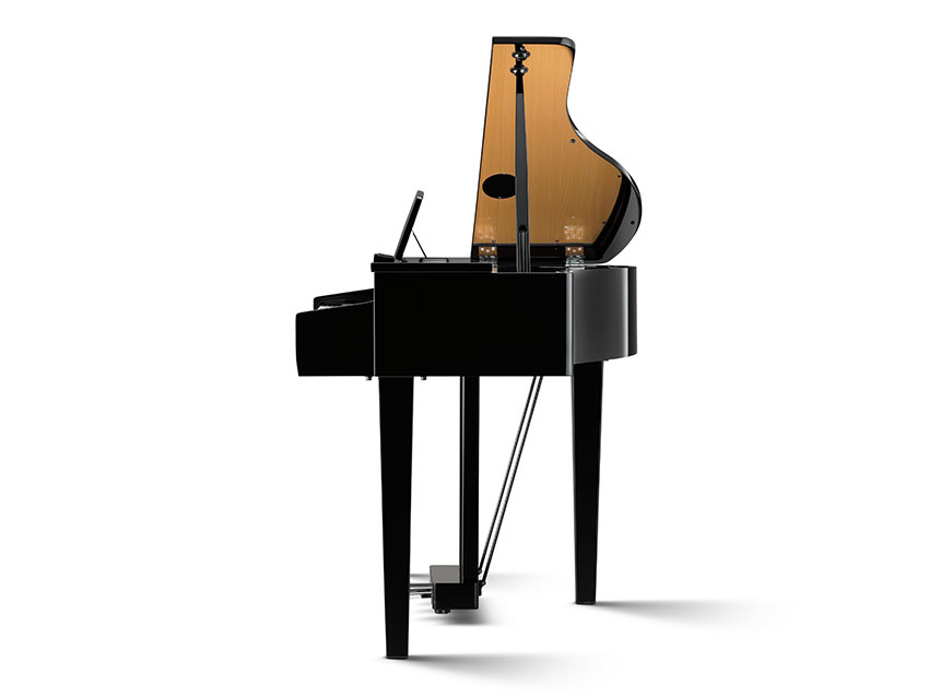 尽管DG30拥有三角钢琴般的琴身设计,但它依然是一款外观紧凑占地不大的乐器,DG30的琴体深度仅87厘米。相对较小的占地面积使DG30可在无法容纳声学三角钢琴的空间中得以摆放,同时乐器的精致和专业感丝毫不减。